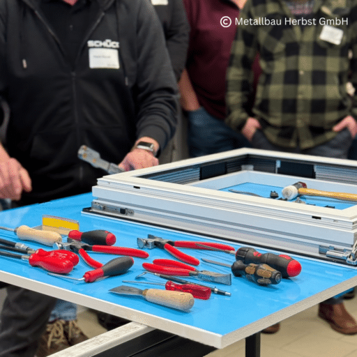 Es ging nicht nur um theoretische Grundlagen, sondern vor allem um praxisnahe Details: richtige Verarbeitung, saubere Einstellung, technische Neuerungen und typische Herausforderungen aus dem Werkstattalltag. Gerade im Metallbau-Handwerk entscheidet oft das Detail über die spätere Qualität auf der Baustelle.